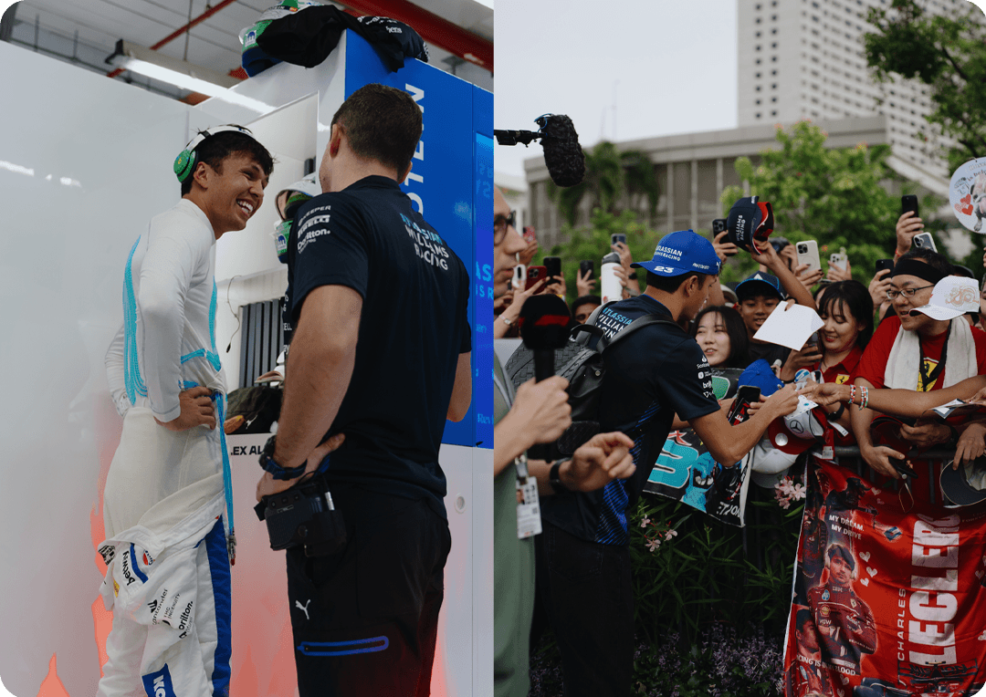 F1 event photography for Alex Albon, during the Italian Grand Prix (Monza) and Singapore Grand Prix 2025.